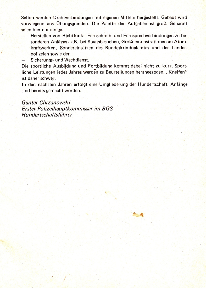 Die Chronik wurde mir von Kamerad Ulrich Götze zur Verfügung gestellt. Das Bundespolizeipräsidium hat der Veröffentlichung fernmündlich am 06.04.2022 zugestimmt.
