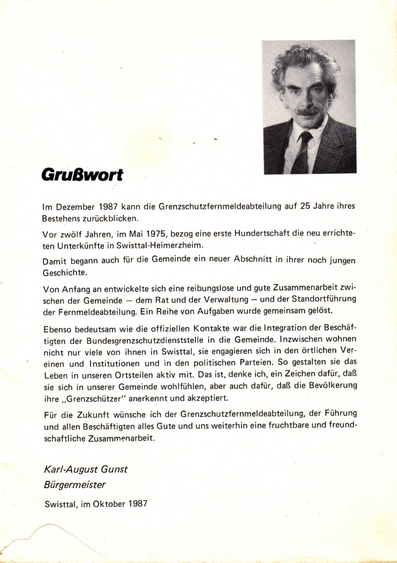 Chronik 25 Jahre Grenzschutz - Fernmeldeabteilung Swisttal-Heimerzheim 1962 - 1987